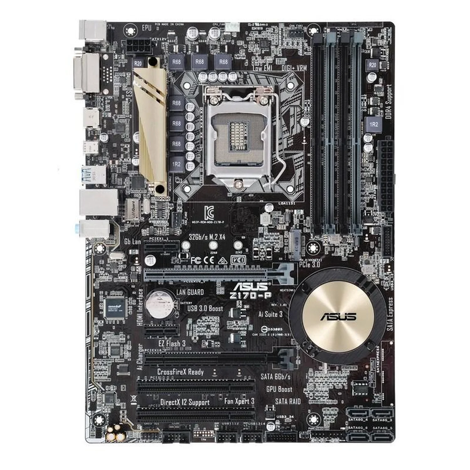 ASUS Z170-P je spolehlivá základní deska založená na čipsetu Intel Z170, určená pro procesory Intel Core 6. a 7. generace (Skylake a Kaby Lake) s paticí LGA 1151. Tento model představuje základní, ale